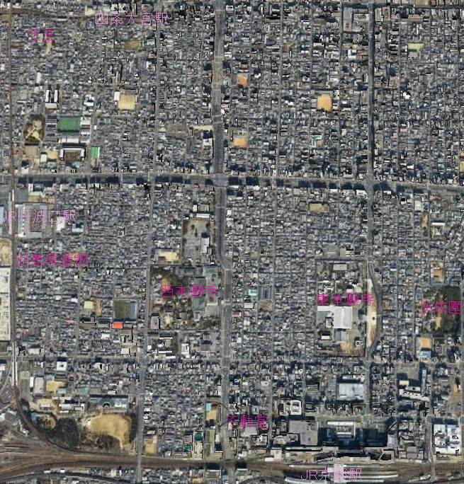 1年ぶりに出歩くことに。きっかけは、かねてから見たいと思っていた西本願寺の飛雲閣(国宝)が11月上旬だけの期間限定で一般公開されるからです。場所はJR京都駅前だが、これまでこの周辺はあまり縁がなかった。改めて調べてみると、東本願寺、渉成園(枳殻邸)、旧島原遊郭、壬生寺がある。そこで東の渉成園から出発し壬生へ向かうコースを予定していた。ところが、さらに調べるとこの近辺は新撰組との縁が深い地域でもありました。その新撰組は壬生からスタートし、西本願寺、その南の不動堂村へと屯所を移っていったのです。そこで新撰組の歩みに合わせ、私の散策も壬生から出発し、旧島原遊郭、西本願寺、不動堂村屯所跡、東本願寺、渉成園へと歩くことにしました。西本願寺南の興正寺にも寄りたかったのだが、時間も体力もきつかったので断念。久しぶりの出歩きだったのでかなり疲れました。これからは一日中歩きまわるのは無理なようです。