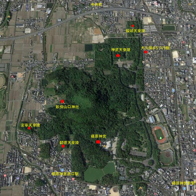 今まで多くの天皇陵を見てきたが、令和という新しい時代が始まったのを機に初代天皇の陵墓を訪ねてみることにした。その日は2月11日に限る。神武天皇が橿原の地に即位したとされる日だからです。即位地の橿原神宮では紀元祭が行われる。橿原神宮、神武天皇陵と近くにある第二代綏靖天皇陵、第三代安寧天皇陵、第四代懿徳天皇陵もついでに訪ねてみます。これだけでは一日ウォーキングにならないので、午後は今井町へ。今井町と神武天皇陵は何の関係もありません。ただ近いだけです。