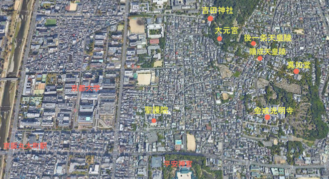 メディアによれば京都も少しは人出が戻ってきているようです。紅葉シーズンになったので、私も京都へ行きたくなった。そこで今回は、京都で未踏の地((^^♪)、平安神宮の裏を歩くことにしました。ここには山伏の元締め・聖護院、新選組発祥の地・金戒光明寺、そして紅葉の美しさで知られる真如堂が並びます。一日のんびり歩くのに丁度良い範囲だが、それでも時間が余ったので、近くの天皇陵と吉田神社まで足をのばしました。